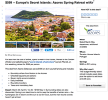 several trips and getaways offered on travelzoo.com. Click here for more detail on the money side of things.... Money Matters